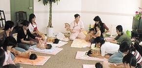 たらみエンゼルレディースクリニックでは、ベビーマッサージ等を行うエンゼル教室を第2・4木曜日に開催しています。教室終了後は、ティータイムで「育児ママの会」を行っております。