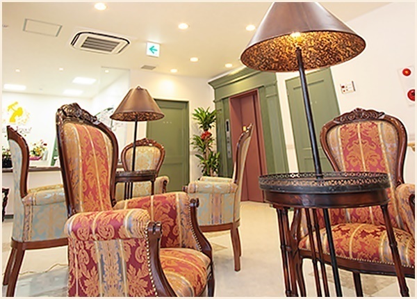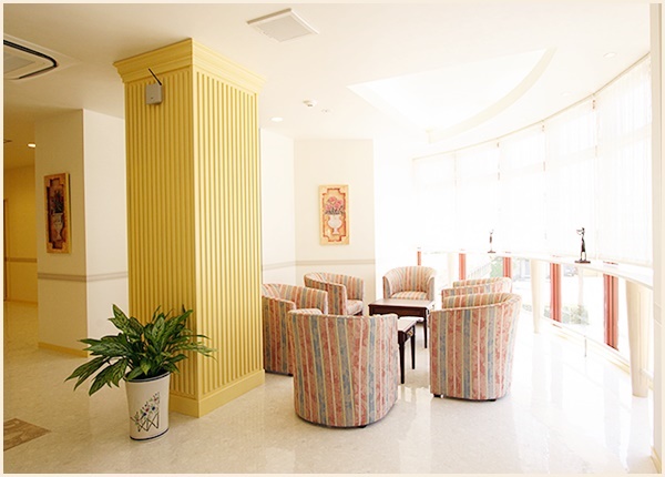 | ■待合ロビー オルゴールと噴水の音そして広々とした空間、ゆったりとくつろぎ癒される空間を作りました。 |