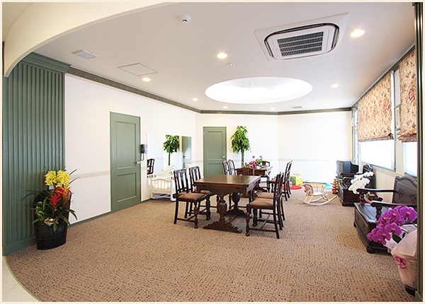 | ■2Fラウンジ 柔らかい陽光が降り注ぐ広々とした空間。1F待合ロビーと同様に、ゆったりとくつろげる癒しの 空間になっています。 |