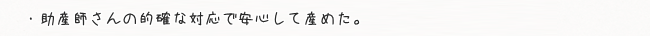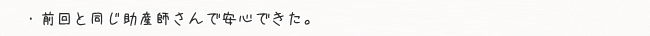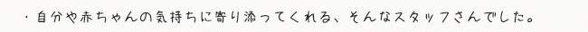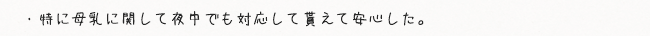 当クリニックについての感想を、ご出産されたママたちからお寄せ頂いております。 その中の一部ですが、ご紹介させていただきます。