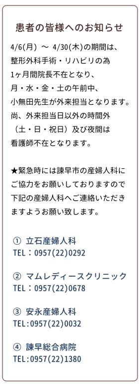 長崎県諫早市の産婦人科 産科・婦人科・妊娠相談・妊娠指導